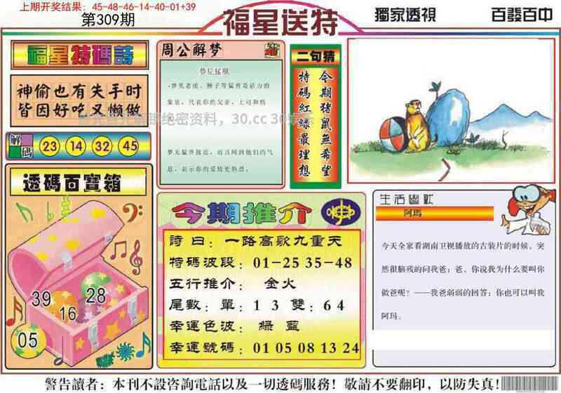309期:吉凶两肖☣【吉美+猴】开:鼠06中